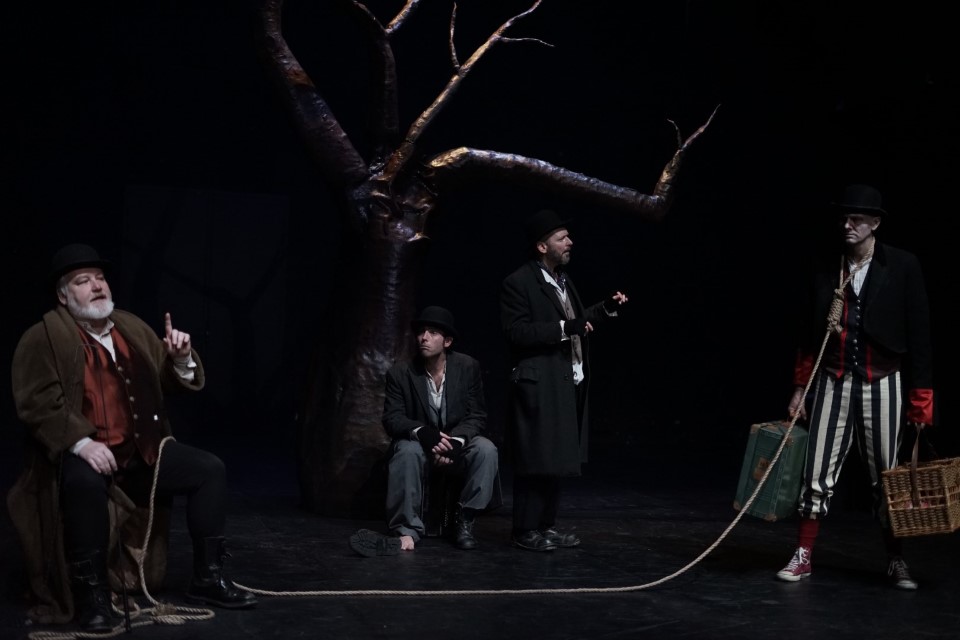 Dans cette pièce, les personnages de Vladimir et Estragon sont prisonniers du temps, perdant toutes attaches au monde et n’ont plus que leur amitié et l’attente de Godot comme point d’ancrage au réel. La pièce pose des questions sur ce que nous attendons, ce que nous souhaitons garder, quelle issue recherchons-nous, quels rêves et quelle utopie. Pour la compagnie, cette pièce est un reflet de la société actuelle, en mettant en avant les thèmes de la mémoire, des utopies et de la parole engagée.