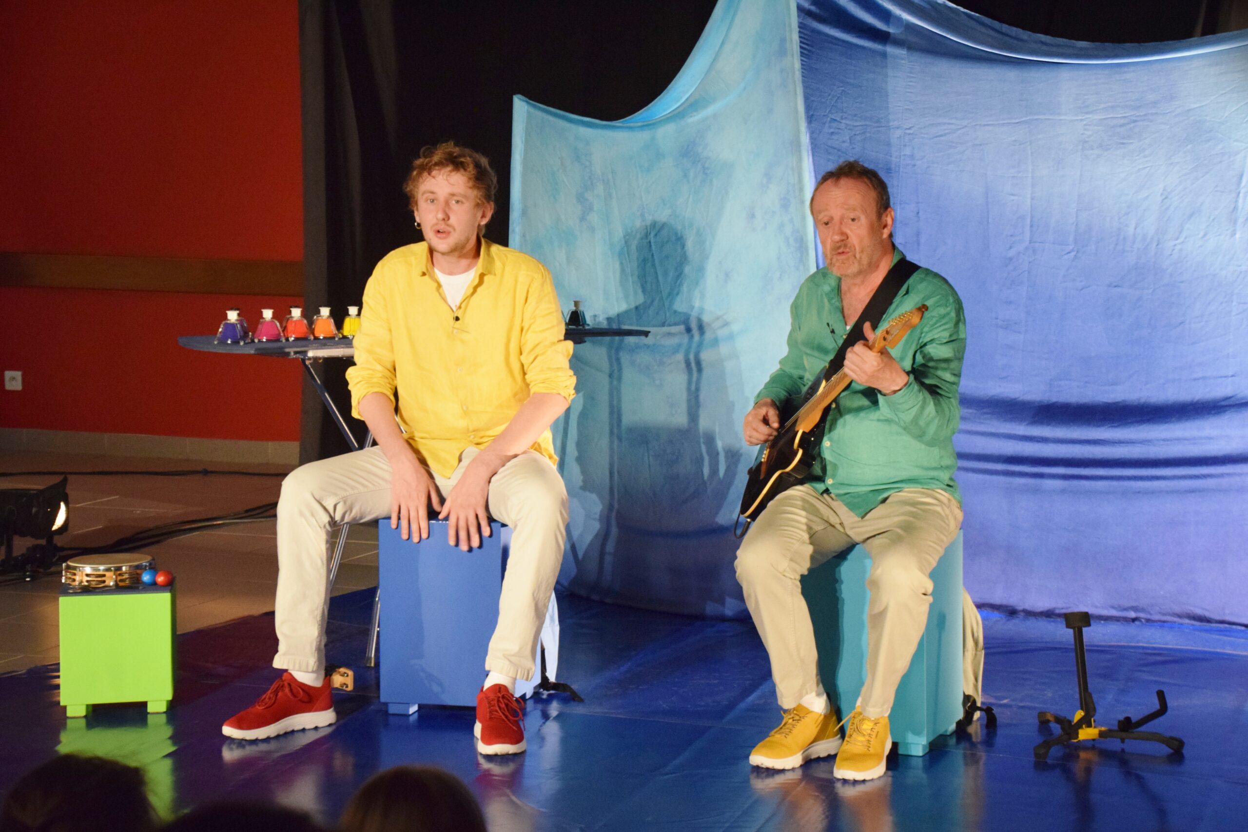 Ce sont ces questions fondamentales que deux artistes au plateau, Frédéric Obry et Etienne Obry (un père et son fils !) tenteront d’aborder de façon poétique, musicale, théâtrale et ludique afin d’y apporter quelques éléments de réponse. Sous la forme d’un concert chanté, au son de la guitare de Frédéric et des percussions d’Etienne s’inviteront quelques instruments inventés propres à l’identité musicale et scénographique de la Waide Cie.