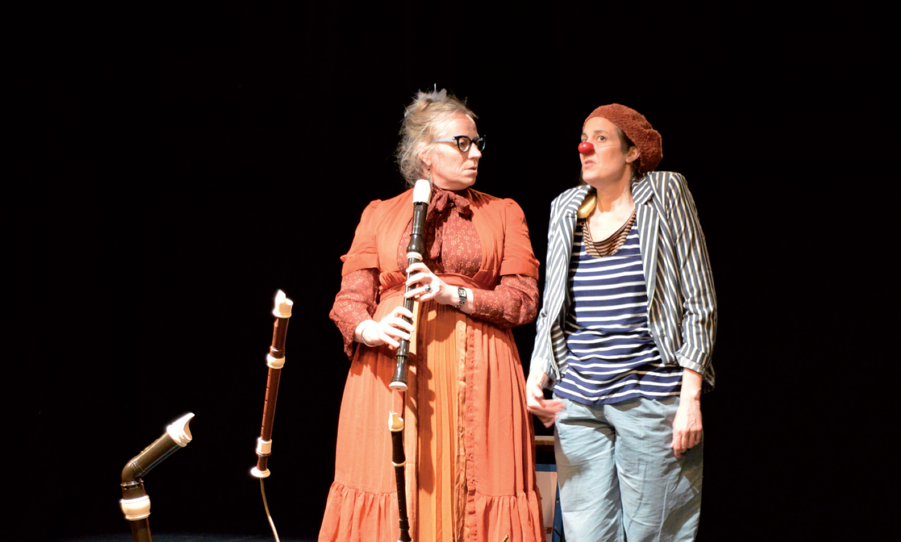 Ce spectacle est la rencontre entre deux mondes que tout oppose, il apporte un autre regard sur des préjugés établis entre le clown et l’opéra, entre la flûte à bec et la musique…